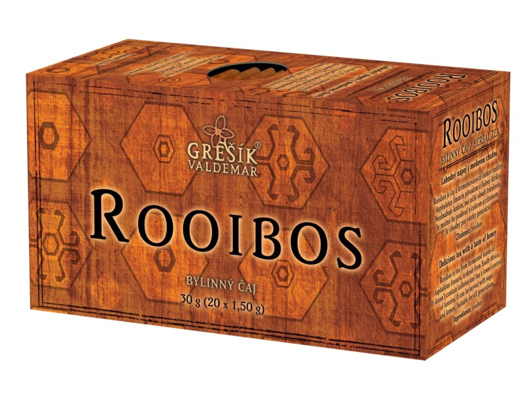 Rooibos je čaj z fermentovaných lístků rostliny Asphalatus linearis původem z Jižní Afriky. Neobsahuje kofein, má nižší obsah tříslovin. Má příjemnou medovou chuť, je možné ho podávat s cukrem a citrónem. Je vhodný pro všechny generace.