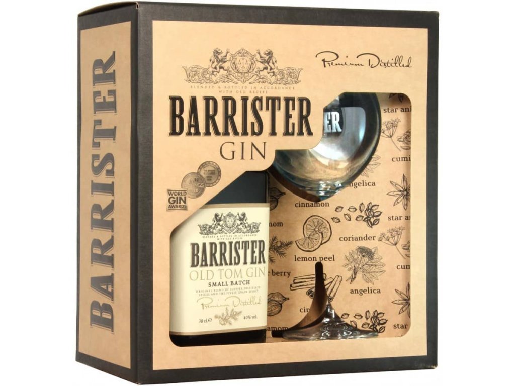 Barrister gin Old Tom 40% 0,7l dárkové balení se sklenkou